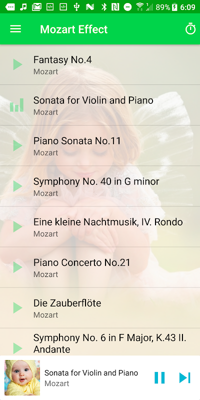 Best Mozart tracks for babies. Each track has been carefully selected to provide your baby brain development, memory stimulation and positive emotions.