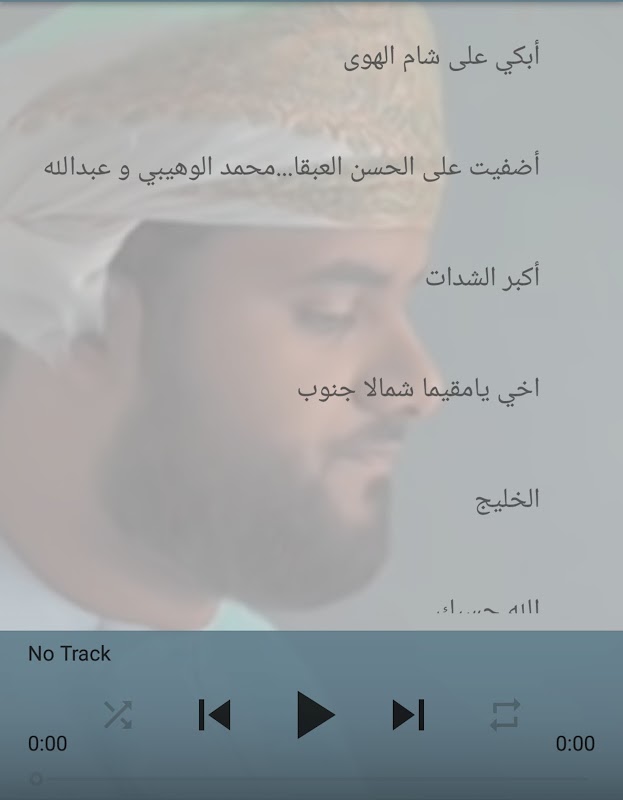 แอปพลิเคชั่นนี้มีคอลเลกชันของเพลงที่มีเสียงของมูฮัมหมัดอัล - วาฮาบีนักร้องชาวโอมานในรูปแบบ