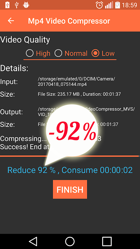 ข้อมูล การบีบอัดวิดีโอเครื่องมือ APK