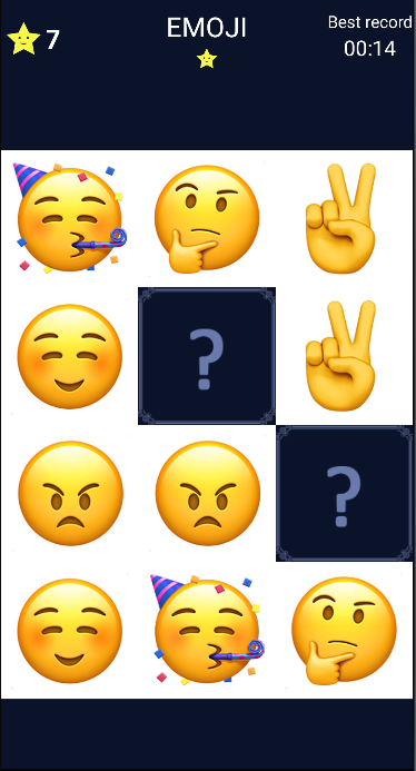 If you select a card, you will see the picture, and if the two pictures are the same, the card will look fully unfolded.