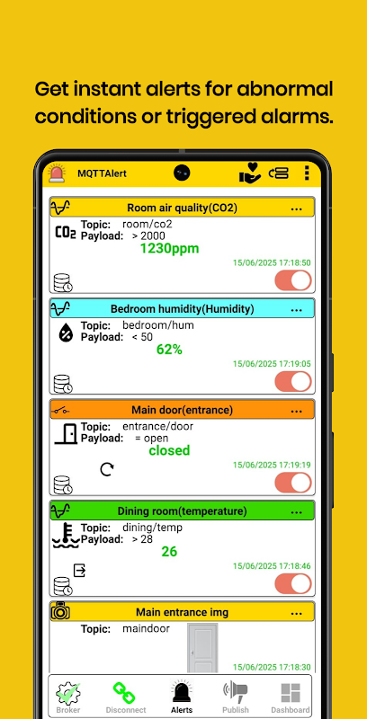 ✔ ระบบอัตโนมัติอัจฉริยะ – กำหนดค่าการแจ้งเตือนเพื่อเผยแพร่คำสั่ง MQTT โดยอัตโนมัติ (เช่น เปิดพัดลมหากอุณหภูมิสูงเกินไป หรือปิดพัดลมเมื่อปลอดภัย)
