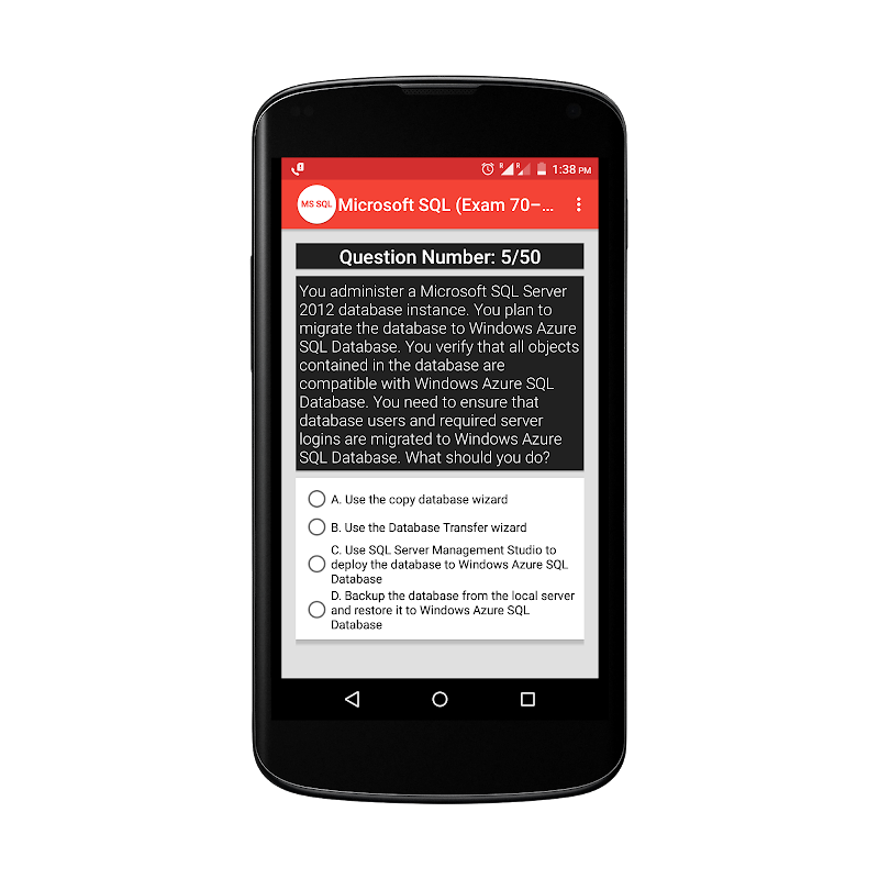 การจัดการการทดสอบฐานข้อมูล MS SQL App นี้สำหรับผู้ที่กำลังเตรียมการสำหรับการจัดการโครงสร้างพื้นฐานฐานข้อมูล MS SQL (สอบ 70-764) และต้องการประเมินความรู้ระบุจุดอ่อนและล้างการสอบ