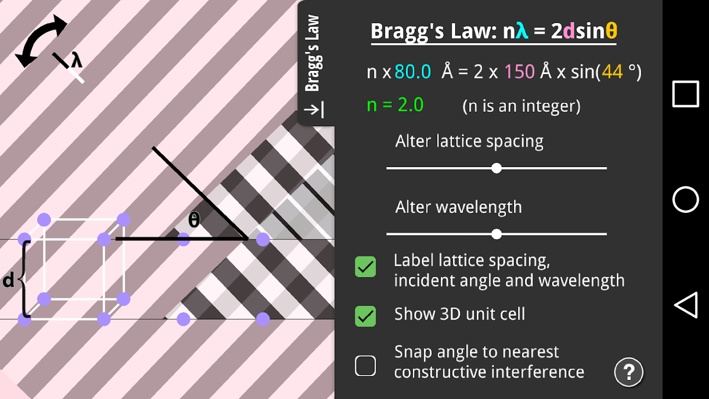 โปรแกรมนี้ช่วยให้การศึกษาวิธีการรบกวนสร้างสรรค์และ distractive ของเอ็กซ์เรย์ที่เกิดขึ้นในผลึก เปลี่ยนมุมของลำแสงที่เข้ามาเอ็กซ์เรย์ระยะห่างของเครื่องบินอะตอมหรือความยาวของคลื่นเอ็กซ์เรย์และเห็นผลทันทีของพวกเขาบนคานสะท้อนให้เห็นถึง