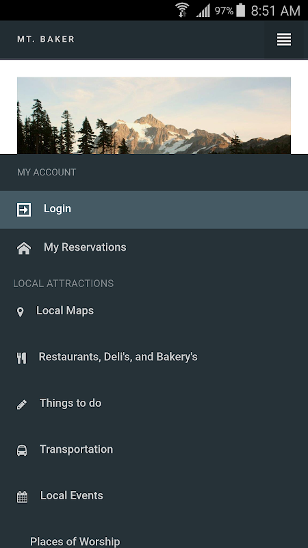 Mt. Baker reservation access, driving directions, and local information.