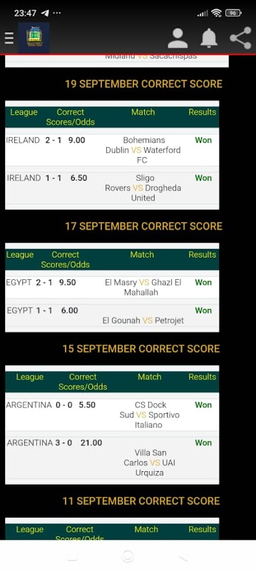การนำทางที่ง่ายดายพร้อมส่วนต่างๆ ที่ชัดเจนสำหรับการทำนายผล ผลการแข่งขัน และนโยบายความเป็นส่วนตัวฟรี