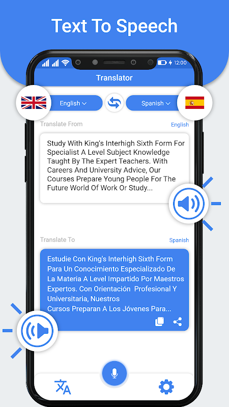 แอพแปลข้อความช่วยในการแปลทุกภาษาที่ป้อนข้อความเป็นคำพูดออนไลน์และข้อความเป็นข้อความ โปรแกรมแปลข้อความสามารถแปลข้อความเป็นคำพูดออนไลน์ฟรีทุกภาษา คุณสมบัติข้อความเป็นคำพูดออนไลน์ฟรี tts ช่วยให้คุณแปลข้อความภาษาอังกฤษเยอรมันเป็นภาษาโลกแปลเป็นข้อความเป็นเสียง