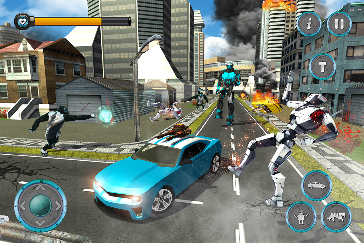 It’s time to exploit as action robot games of robotic cheetah battle who will blow the sci-fi powers of the virtual robot to smash the enemies in this multi-robotic cheetah car transform simulator. You can fight with city evil robots and save innocent civilians from these futuristic city gangsters. Use your conversion powers to beat these villains in multi war games of 2019.