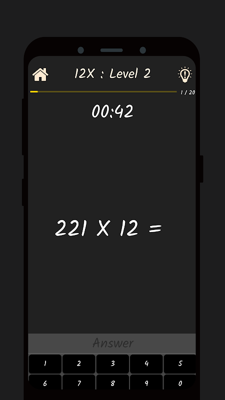 It has unlimited levels, and once you completed with the presented question, the app will automatically take you to the next level. Currently, most of the questions are based on multiplication, but we'll add several types of problems.
