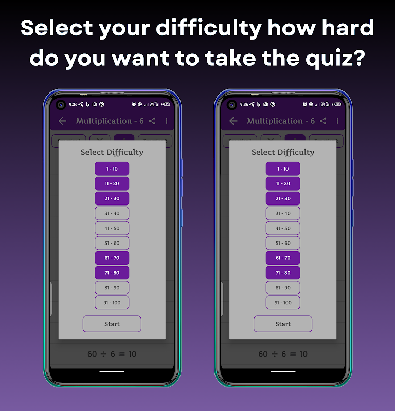 ปรับแต่งประสบการณ์การเรียนรู้ของคุณโดยมุ่งเน้นไปที่ตารางสูตรคูณเฉพาะหรือผสมผสานตารางเหล่านั้นเข้ากับช่วงที่ท้าทายยิ่งขึ้น ความยืดหยุ่นนี้ช่วยให้มั่นใจได้ว่าผู้เรียนทุกระดับจะได้รับประโยชน์จากแอปนี้