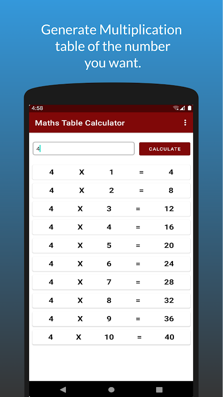 Math Table Calculator 1.03