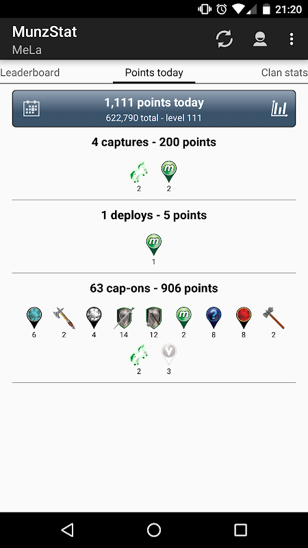 MunzStat is an Android app for the Munzee player who likes keeping up with the daily score development and activity on his or her profile. The app displays a list of activity (captures, captures on your munzees, and deploys) for today, or any other day.