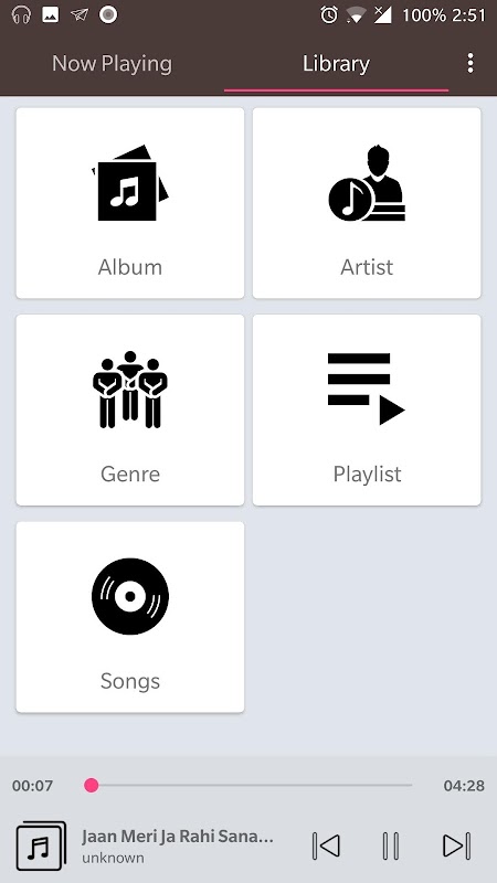 * Browse and play your music by albums, artists, songs, genre, playlists.