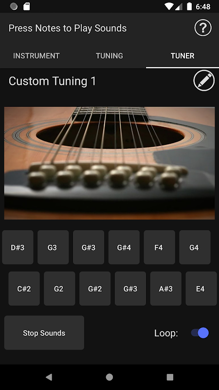Included in this app are 5 tunings that you can name reconfigure however you want! No longer is your musical creativity restricted by the tunings already installed on the app!