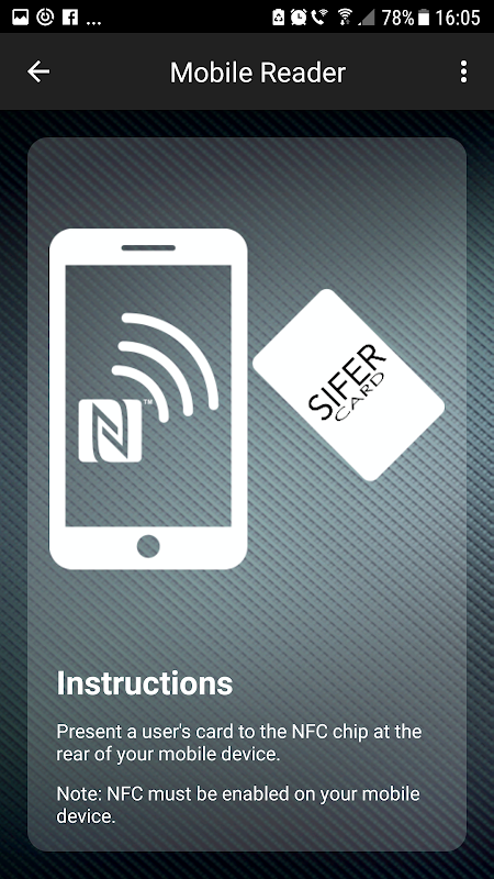 Muster Point ใช้ NFC เพื่ออ่าน CSN ของการ์ด Inner Range SIFER และ HID MIFARE DESFire© EV1 & EV2