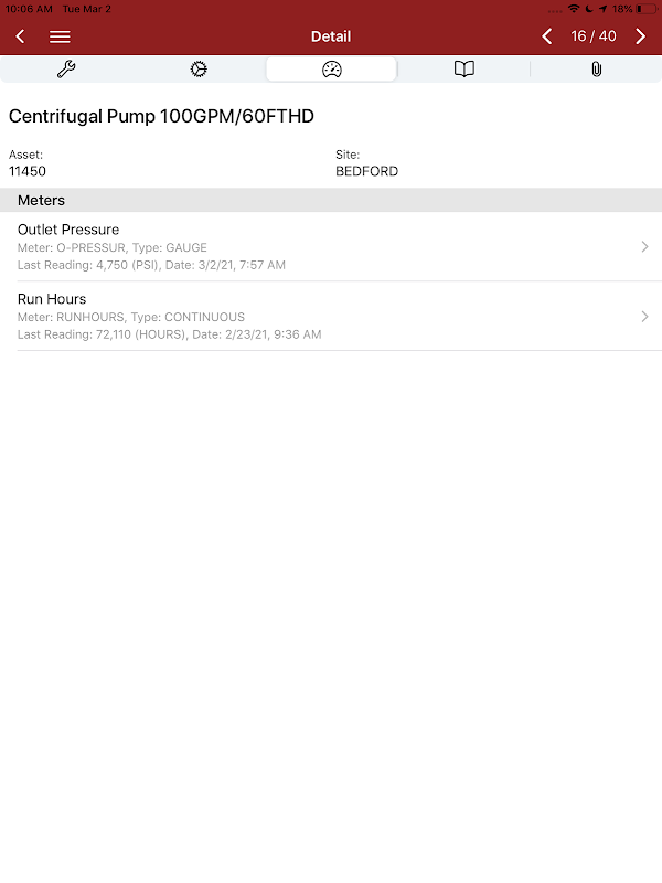 ความสามารถในการเดินไปยังสินทรัพย์สแกนบาร์โค้ดหรือป้อนข้อมูลและดูข้อมูลการบำรุงรักษาที่เกี่ยวข้องทั้งหมดอย่างรวดเร็วเกี่ยวกับสินทรัพย์นั้นมีค่าอย่างยิ่ง ผู้ใช้ไม่เพียงดูข้อมูลสินทรัพย์เท่านั้น แต่ยังมีความสามารถในการสร้างและดูการอ่านมิเตอร์สร้างใบสั่งงานหรือคำขอบริการและสลับการหยุดทำงานของสินทรัพย์