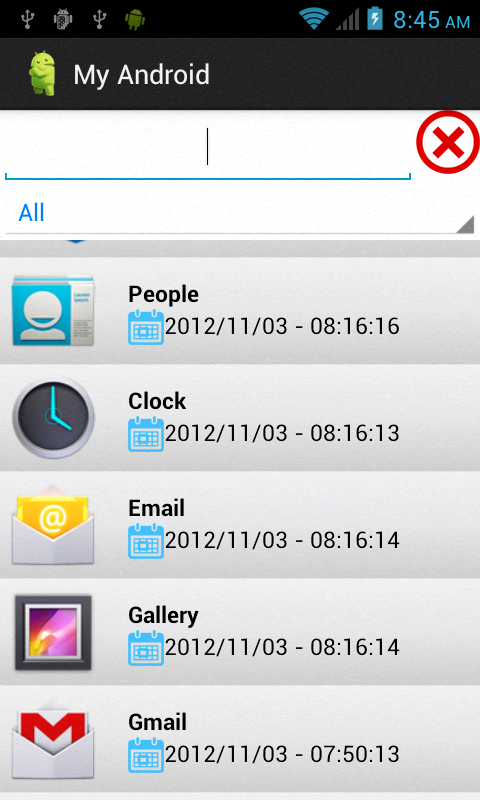 - Applications: you will see all list of applications installed and application downloaded on the device and can search, sort, uninstall and run apps.