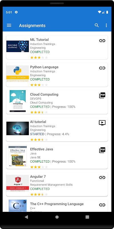 This app aims to deliver e-Learning content , allowing user to handle trainings and track their progress. This form the part of LMS platform, helping Business HR team aims to digitalise the existing content, create e-learning content, organize it into courses, deliver the content, assign trainings to users, monitor & assess their performances, and provide a clear career path to every user.