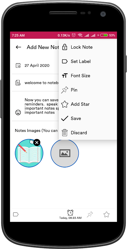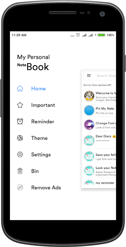 My Notebook เป็นแอปพลิเคชั่นที่ต้องมีสำหรับนักเรียนนักธุรกิจและสำหรับใครก็ตามที่ใช้โทรศัพท์และแท็บเล็ต Android เพื่อจดบันทึก สถานะเรียลไทม์บันทึกไดอารี่พร้อมล็อค สมุดบันทึกเซอร์เรียล ใช้แอพไดอารี่นี้เพื่อสร้างบันทึกส่วนตัวของคุณเองเกี่ยวกับเหตุการณ์ประจำวันการนัดหมายเพื่อใส่รายละเอียดอัตราภาษี GST รายละเอียดมิตรภาพของคุณสถานะ 4 คำพูดความลับและความรู้สึกของคุณ
