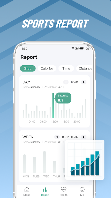 รายงาน My Pedometer - Step Counter ได้รับการออกแบบมาเป็นพิเศษสำหรับอุปกรณ์มือถือเพื่อช่วยคุณติดตามข้อมูลการเดินและแคลอรี่ที่เผาผลาญ คุณยังสามารถดูสถิติของคุณต่อสัปดาห์ เดือน หรือใน 24 ชั่วโมงที่ผ่านมาได้
