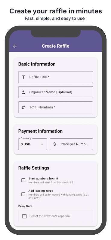 สร้างการจับฉลากของคุณเอง ปรับแต่งตามสไตล์ของคุณ แชร์ภาพ และขายตั๋วได้อย่างง่ายดาย เมื่อพร้อมแล้ว จับรางวัลผู้ชนะได้อย่างโปร่งใส ทั้งหมดนี้ทำได้บนโทรศัพท์ของคุณ แม้กระทั่งออฟไลน์