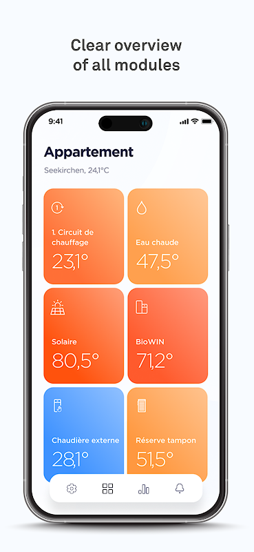 แอป myComfort นำเสนอเงื่อนไขและการควบคุมที่เป็นนวัตกรรมใหม่สำหรับระบบทำความร้อนของคุณ เพื่อการตัดสินใจที่รวดเร็ว จะช่วยให้คุณมีฟังก์ชันพิเศษ เช่น โหมด Eco หรือ Comfort เป็นเรื่องง่ายอย่างยิ่งในการวางแผนและจัดระเบียบโปรแกรมการทำความร้อนของคุณ นอกจากนี้ยังมีการตั้งค่าที่ใช้งานง่าย เช่น การเติมน้ำอุ่นเพียงครั้งเดียวหรือการเปลี่ยนโหมดการทำงาน ด้วยคุณสมบัติเหล่านี้ แอป myComfort ช่วยให้มั่นใจได้ว่าความสะดวกสบายของคุณจะได้รับการดูแลอยู่เสมอ