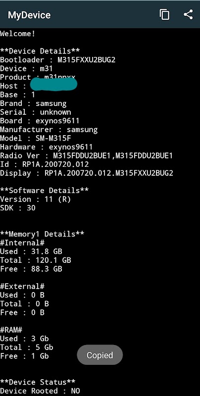 Device make, Manufacturer, Serial id, Version, Display, etc.