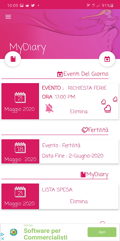MyDiary ช่วยให้คุณรักษารอบการมีประจำเดือนของคุณโดยการแสดงช่วงเวลาแห่งความอุดมสมบูรณ์และความสม่ำเสมอของรอบประจำเดือนของคุณ นอกจากนี้ยังช่วยให้คุณสามารถป้อนบันทึกในแต่ละวันของเดือนด้วยการแจ้งเตือนใด ๆ