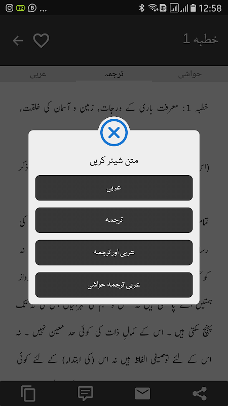 ۳۔ خطبات، مکتوبات اور حکمتوں کو کوپی کرنے اور کسی بھی سوشل میڈیا نیٹ ورک پر شیئر کرنے کی سہولت۔
