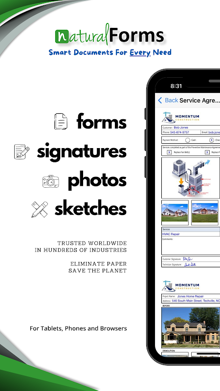 เลิกใช้กระดาษและเพิ่มประสิทธิภาพขั้นตอนการทำงานของคุณด้วย naturalForms โซลูชันการบันทึกข้อมูลบนมือถือที่ใช้งานง่ายนี้ช่วยเพิ่มความคล่องตัวให้กับกระบวนการ ปรับปรุงประสิทธิภาพการทำงาน และลดต้นทุนสำหรับพนักงานที่ทำงานนอกสถานที่ทุกขนาด