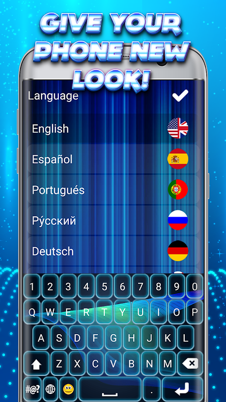 Decorate your device with beautiful shades of neon blue “keyboard cover” and select your favorite “keyboard skins”. Everybody will think you have got a brand new phone! Get yourself a luminous keyboard customizer and let these electric keyboard skins turn you into a real trendsetter among your friends. You will love this sparkly neon color themes!