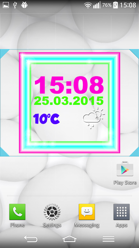 (¸.•´ (¸.•` ¤ Neon Digital Weather Clock will illuminate your phone or tablet with all of the lights of an incredible “neon color splash” in red, yellow, blue, purple or pink color. Be romantic - add some cute neon hearts to your screen and neonize your “Android™ phone” or your tablet with weather clock and date widget. Beautify your smartphone with “glowing flowers” bathed in ”neon green” or neon and have a pink glowing “flower garden” glitter and sparkle on your screen! The awesome "time and date and weather widget" beautified with subtle “neon glow” can help you find everything you need to know about the latest “weather forecast for free! Try a brand new generation of timekeepers that has everything – a creative “clock with date and temperature” that has been decorated with lovely “neon flowers” for you. Resize your weather clock widget 2x2 and set the “digital alarm clock”, all for FREE! Can you believe that this free “weather app” has all these features? Each day a new “weather clock” unlocks, so, just be patient and have fun combining all ten beautiful designs, font styles and the lovely mesmerizing glow of fluorescent lights!