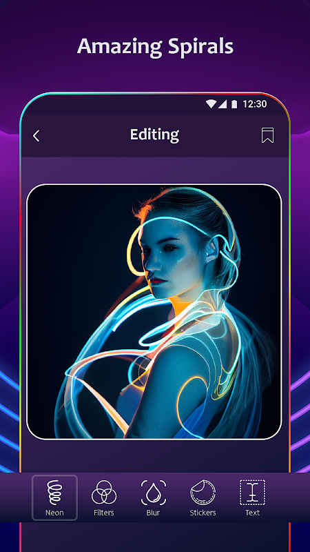 ให้รูปภาพของคุณเรืองแสงในที่มืดด้วยเอฟเฟกต์นีออน มีแม้แต่เกลียวมหากาพย์ที่ทำจากอิโมจิและดอกไม้ ใช้เกลียวเรขาคณิตที่สวยงาม เช่น วงกลมหรือสามเหลี่ยมเพื่อสร้างงานศิลปะดิจิทัล สำรวจ Drip, Spiral, Wings, Rainbow, Neon Fire, Graduation Effects ที่น่าอัศจรรย์และสร้างพื้นหลังไซเบอร์พังค์จากพื้นหลังนีออนเพื่อทำให้รูปของคุณโดดเด่น เสร็จสิ้นการแก้ไขภาพมายากลด้วยกรอบนีออนสุดเจ๋งสำหรับรูปภาพ