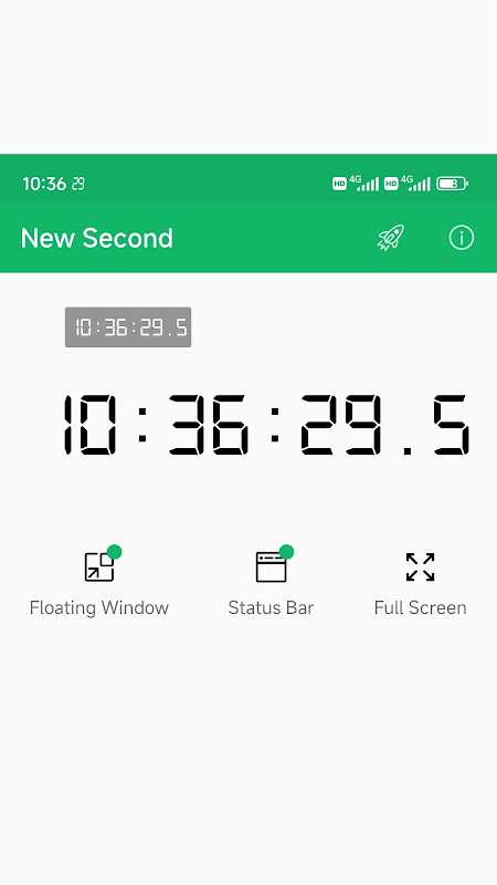 ดูวินาทีอย่างรวดเร็ว แม่นยำ แถบสถานะ หน้าต่างลอย โหมดเต็มหน้าจอ