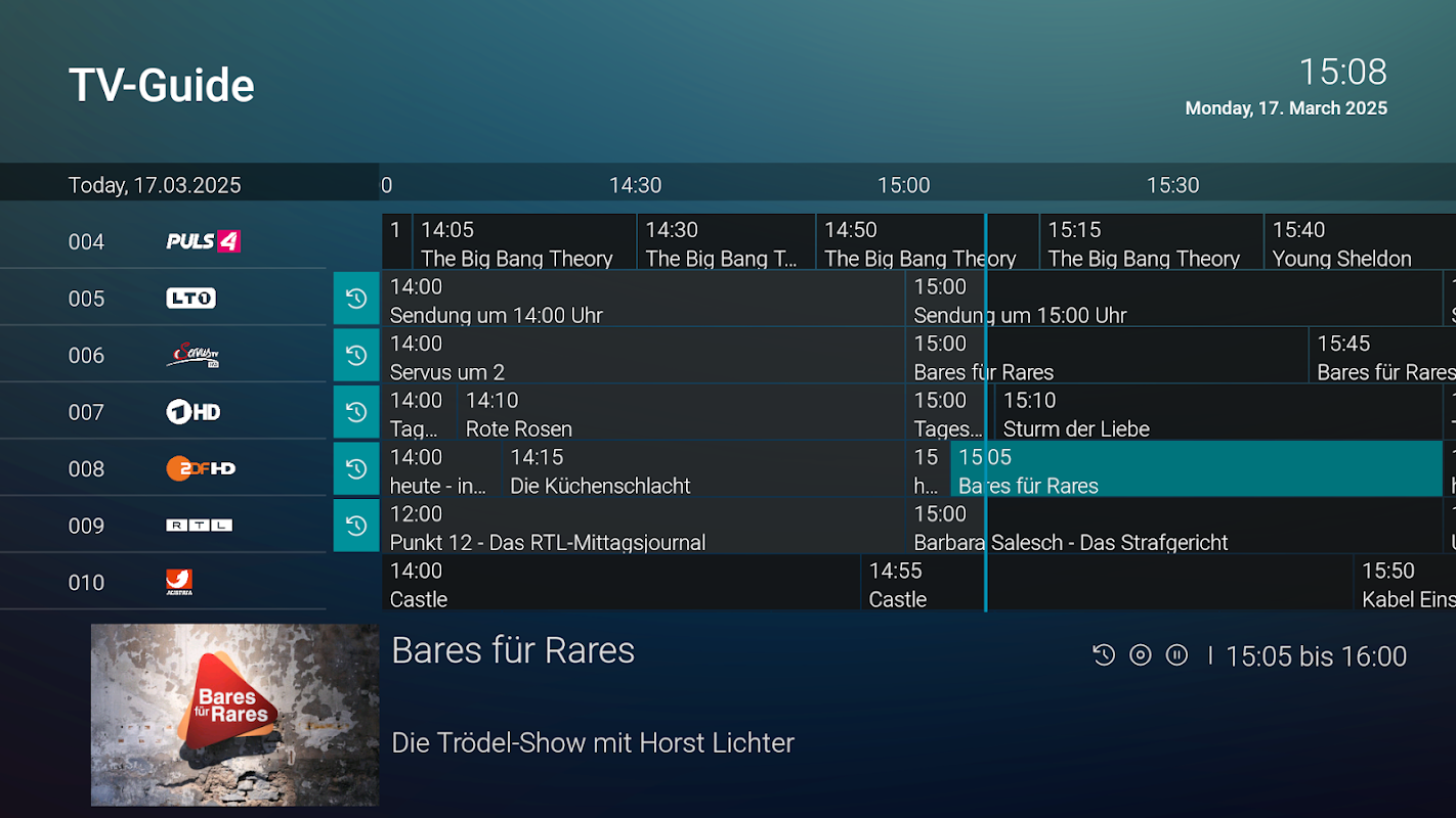 • Premium TV-Guide: TV-Guide ที่ชัดเจนและฟังก์ชั่นการค้นหาที่ใช้งานง่ายช่วยให้คุณค้นหารายการโปรดของคุณได้ในไม่กี่วินาที