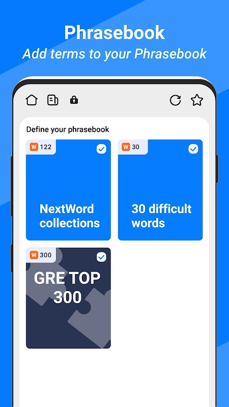 เมื่อคุณท่องอินเทอร์เน็ตแชทกับเพื่อนหรือเล่นเกมออนไลน์คำที่ไม่คุ้นเคยจะถูกเพิ่มลงใน Phrasebook ของคุณโดยอัตโนมัติเพื่อติดตาม แฟลชการ์ดแสดงคำจำกัดความโดยละเอียดพร้อมการออกเสียงที่สามารถสัมผัสได้ การสร้างคอลเล็กชันคำศัพท์เพื่อเรียนรู้ช่วยให้คุณเข้าใจภาษาอังกฤษได้อย่างรวดเร็ว
