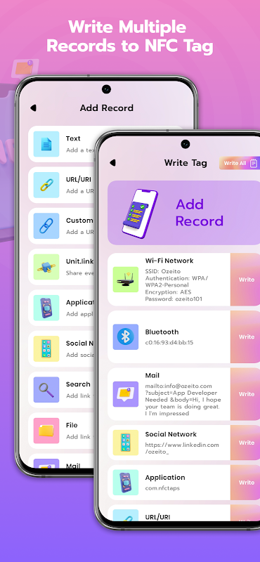 ➤เขียนรายชื่อผู้ติดต่อ, wifi, url ฯลฯ หลายรายการลงในแท็ก NFC