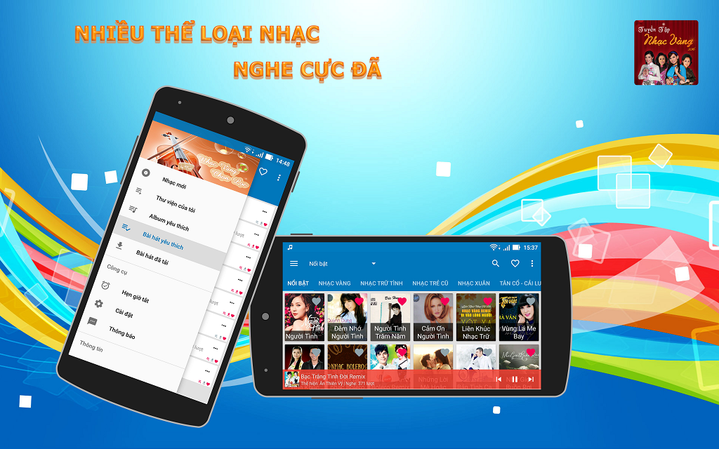- นอกเหนือจากแนวเพลงสีทองและโคลงสั้น ๆ แอปพลิเคชั่นนี้ยังมีแนวเพลงเก่าจากยุค 90 กับนักร้องหนุ่มชาวเวียดนามเช่น Dan Truong, Cam Ly, Quang Dung, Phuong Thanh, Dam Vinh Hung, Hoai Lam, Khanh Dang, Dang Khoi, ....