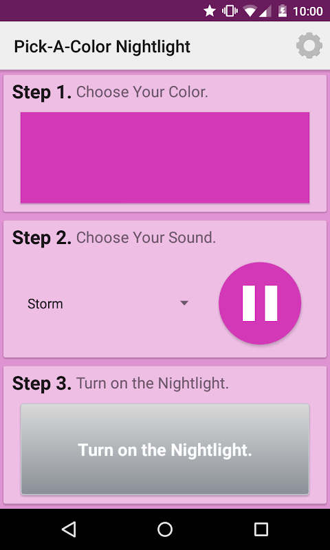 Pick-A-Color Nightlight is an easy-to-use nightlight and sound machine. In three simple steps, you can turn on your nightlight and add a little safety, security, and comfort to any room. Here's what to do: