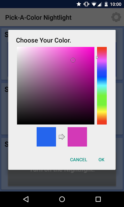 Step 1 - Choose Your Nightlight Color: Use the color wheel to select your favorite nighttime color. The color picker allows you to select every possible color!