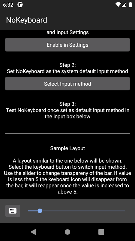✓ติดตั้งง่ายเพียงเปิดแอปแล้วเลือกการตั้งค่าแป้นพิมพ์และเปิดใช้งาน No Keyboard
