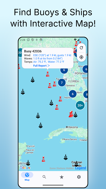 แอป NOAA Buoy Reports ประกอบด้วย: