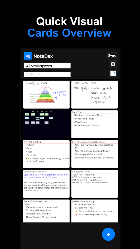 - ซิงค์การ์ดและสแต็กของคุณโดยอัตโนมัติบนโทรศัพท์หรือแท็บเล็ต Android ทุกเครื่องโดยใช้การซิงค์บนคลาวด์ที่ปลอดภัยระดับองค์กรของเรา – การเปลี่ยนแปลงทั้งหมดที่คุณทำจะถูกบันทึกและซิงค์ไปยังคลาวด์และอุปกรณ์ของคุณโดยอัตโนมัติ