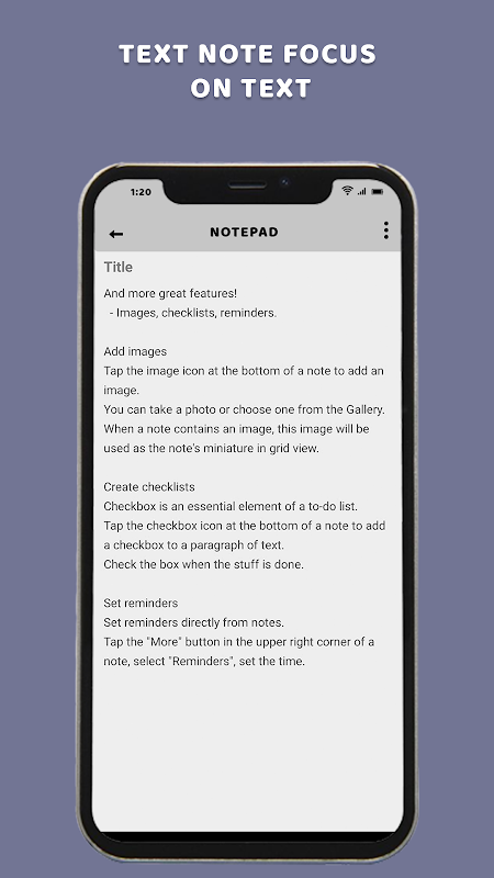 แอพนี้มีโปรแกรมแก้ไขข้อความอเนกประสงค์พร้อมตัวเลือกสำหรับการจัดรูปแบบ การทำรายการ การตั้งค่าการเตือน และการจัดระเบียบบันทึกย่อของคุณด้วยชื่อและหมวดหมู่ ความเก่งกาจนี้ช่วยให้มั่นใจว่าบันทึกย่อของคุณอ่านและนำทางได้ง่าย