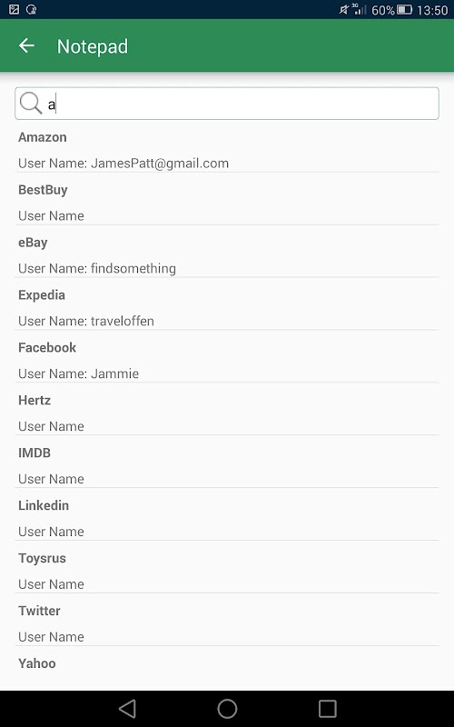 Notepad is a convenient tool to manage personal information like website account and password, credit card information, membership card information, drivers license, passport information... Template is provided to facilitate the save of different kind of information. Notepad support save picture. Don't what to input text? just take a photo and save it. All your information is protected with 256-bit AES encryptionpassword and save on local device, don't worry the information disclosure on internet.