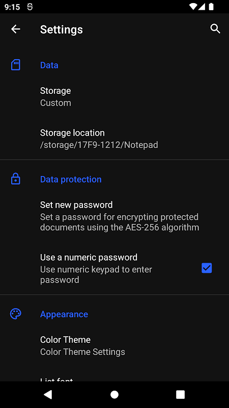 http://play.google.com/store/apps/details?id=ru.diman169.notepad.paranoid