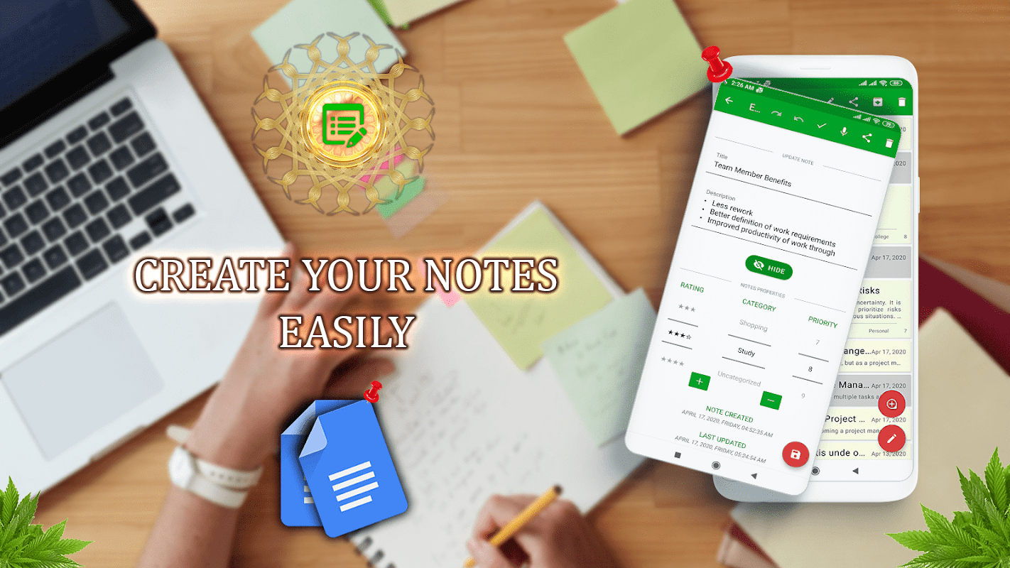 บันทึกย่อทั้งหมดของคุณจะอยู่ในที่ปลอดภัยและคุณสามารถเข้าถึงได้จากทุกที่ทุกเวลาโดยโยนอุปกรณ์ใด ๆ ที่เกี่ยวข้อง แอปพลิเคชั่นนี้เป็นสมุดบันทึกดิจิตอลสำหรับรายการที่ต้องทำบรรยายและบันทึกการประชุมหรือสิ่งที่คุณต้องการจัดระเบียบหรือจดจำและผู้ช่วยที่ดีในการจัดการตารางเวลาของคุณ มันให้ประสบการณ์การแก้ไขแผ่นจดบันทึกที่ง่ายและรวดเร็วเมื่อคุณเขียนโน้ต, บันทึก, อีเมล, ข้อความ, รายการช็อปปิ้งและรายการสิ่งที่ต้องทำ ทำให้การจดบันทึกง่ายกว่าแอปพลิเคชั่นบันทึกและบันทึกอื่น ๆ คุณสามารถจัดหมวดหมู่บันทึกย่อด้วยเทคนิคขั้นสูงและเรียบง่าย