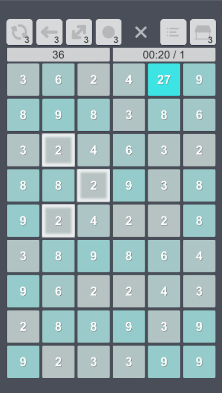 Put three or more identical numbers in a row. From the sum of these numbers you get a new number. The greater the number the more points you get, but at the same time the game will become more difficult.