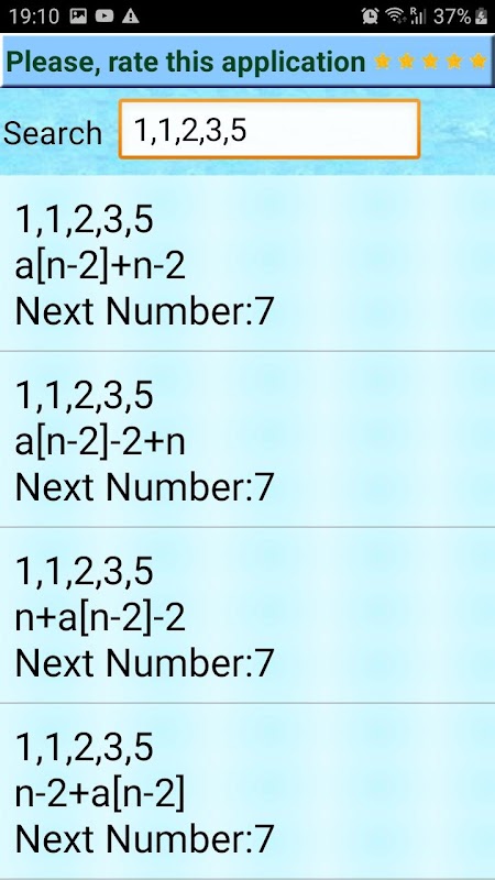 แอปพลิเคชั่นนี้อำนวยความสะดวกในการค้นหาลำดับ แต่มันไม่อนุญาตให้คุณค้นหาลำดับที่เป็นไปได้ทั้งหมดและไม่มีคำอธิบายโดยละเอียด เพื่อเตรียมพร้อมสำหรับการทดสอบและการสอบคุณควรใช้แอปพลิเคชั่น Number Series Calculator อื่น ๆ ของเรา