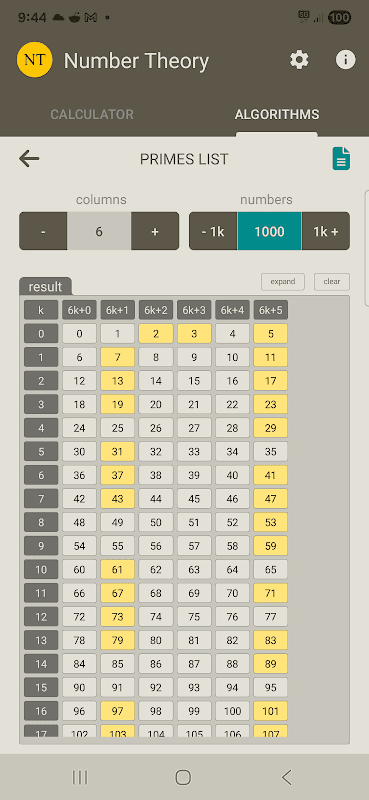 รายการจำนวนเฉพาะ รายการจำนวนเฉพาะเรียงเป็นคอลัมน์