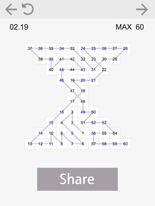 The goal of the game is to fill the grids with adjacent numbers to make an consecutive number knot.